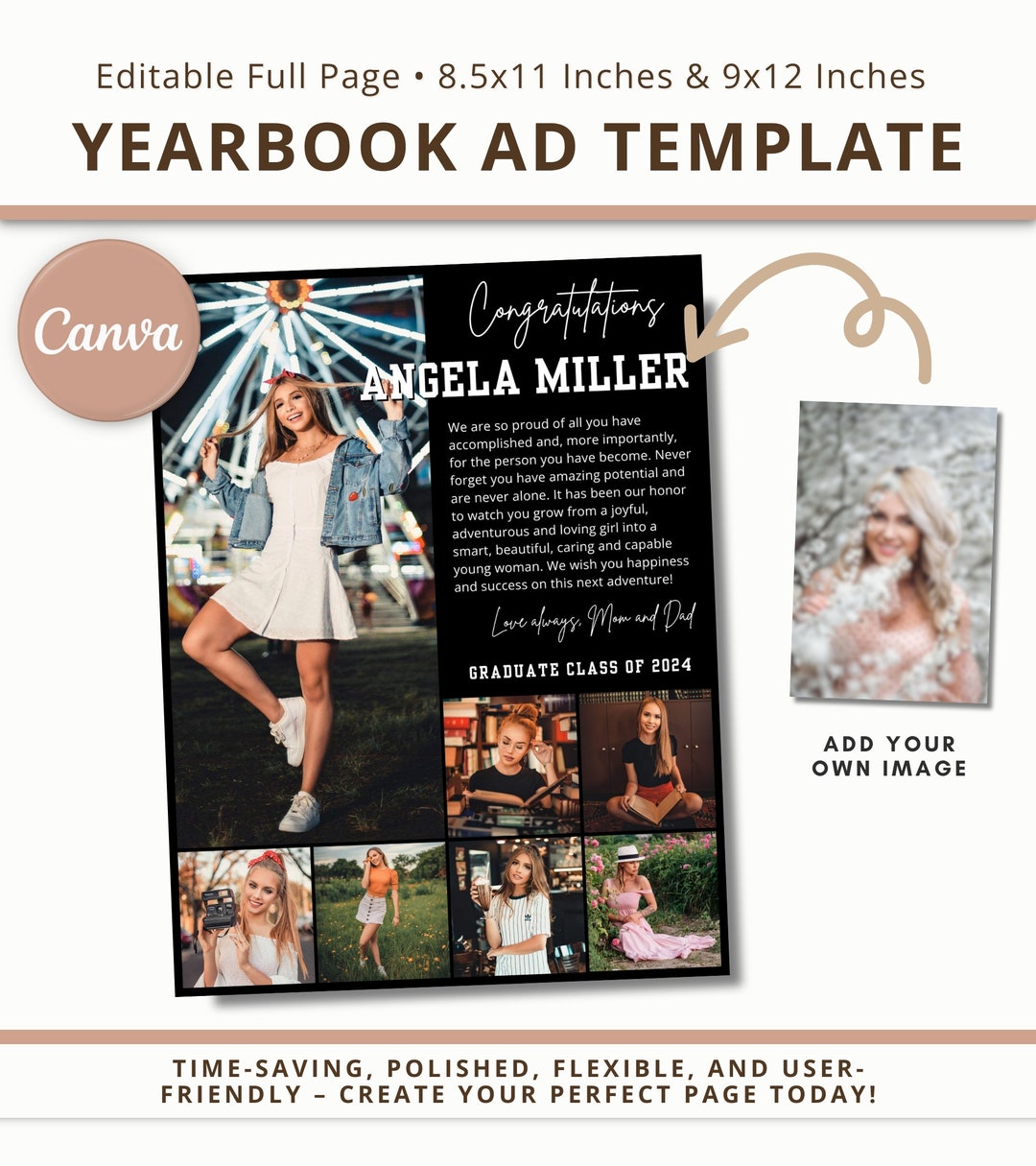 Senior Yearbook Ad Template: Canva Editable Graduation Tribute Etsy