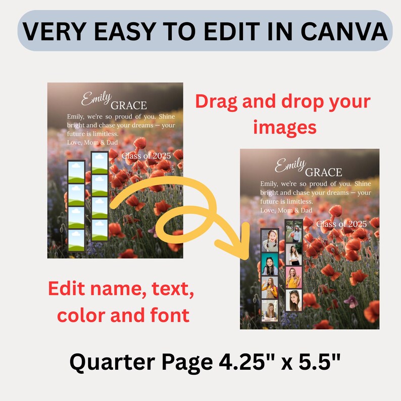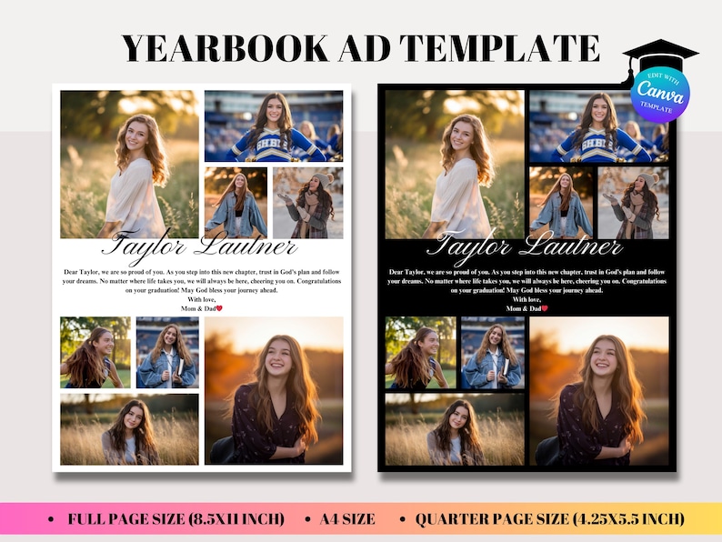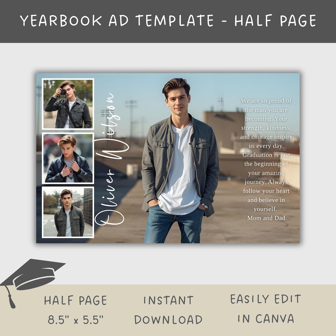 Senior Yearbook Ad Template: Half Page Canva Design with Photos TPT