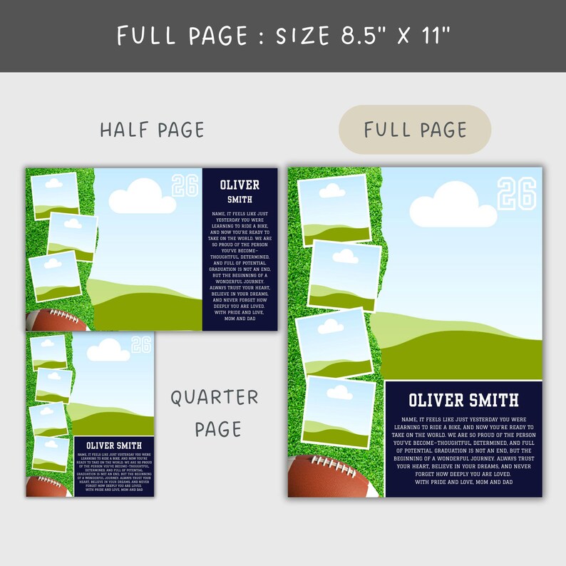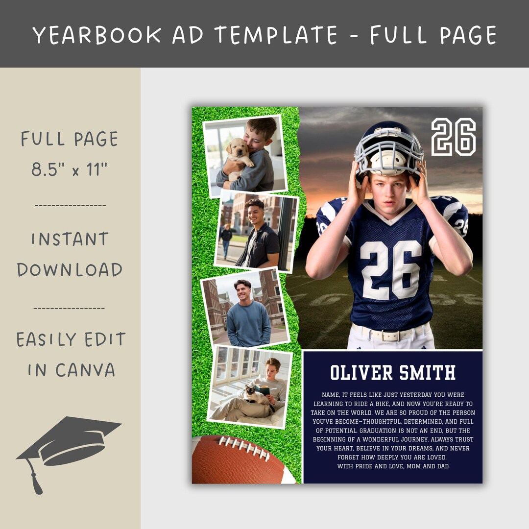 Yearbook Ad Football Template Full Page Editable Senior Graduation