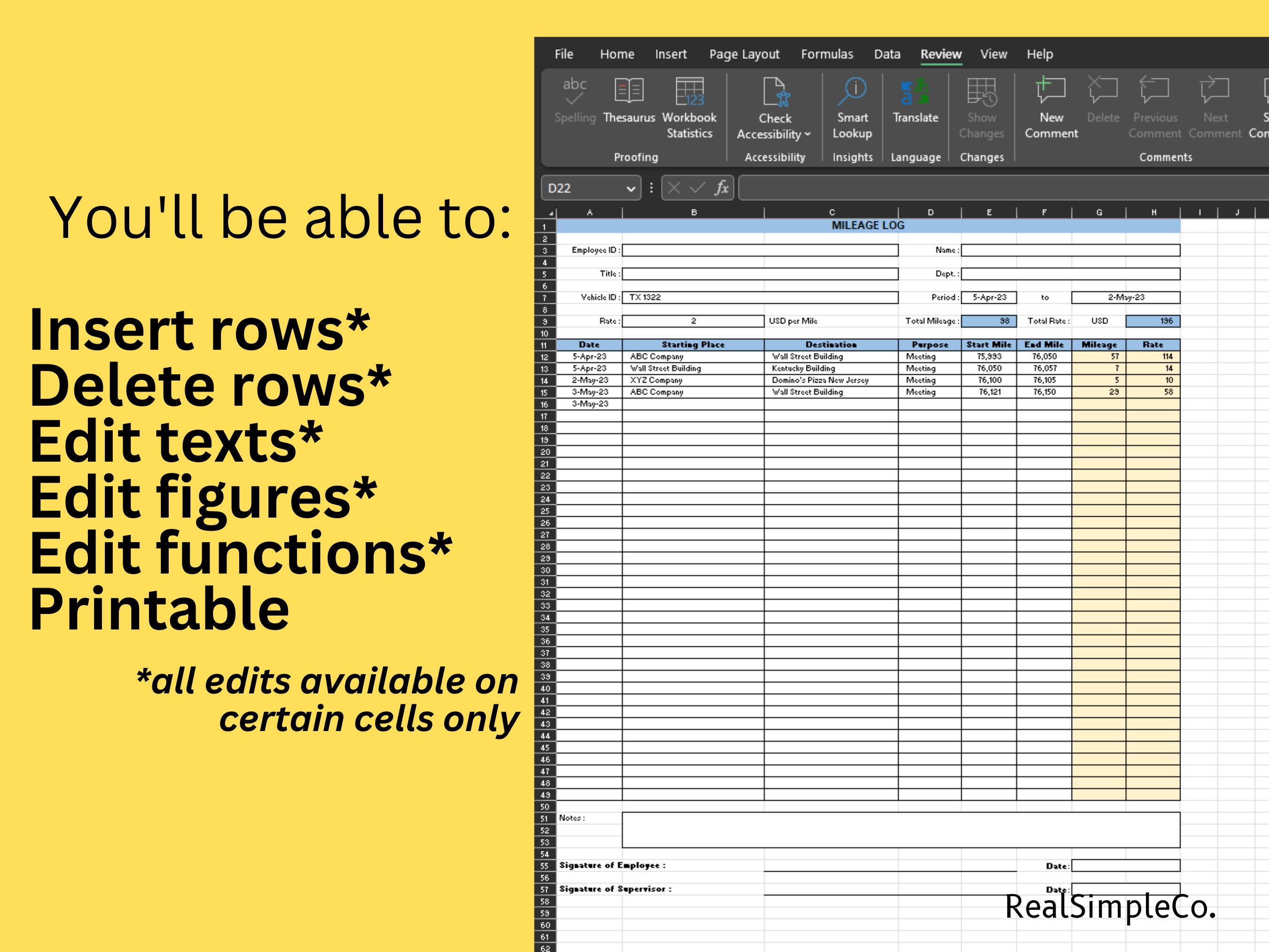 Excel Mileage Log Template