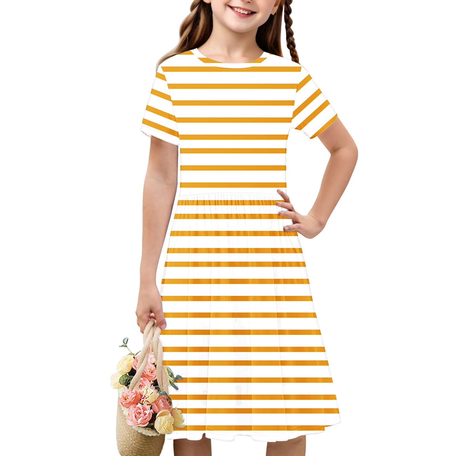BXJX Toddler Girls Graphic Dress Crewneck Casual Cute Short Sleeve