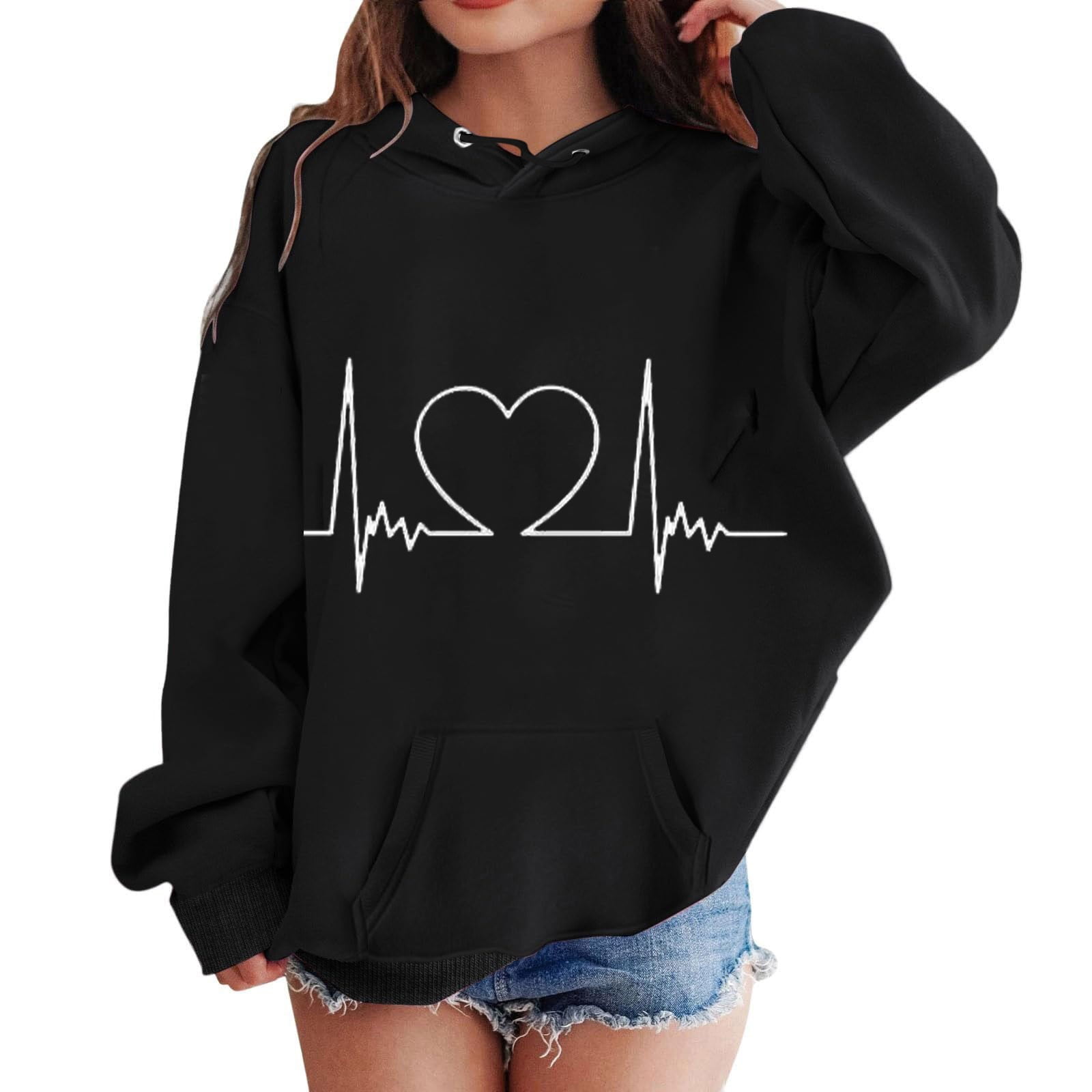 Bnwani Black Hoodie Sweatshirt for Children Long Sleeve Heart Print