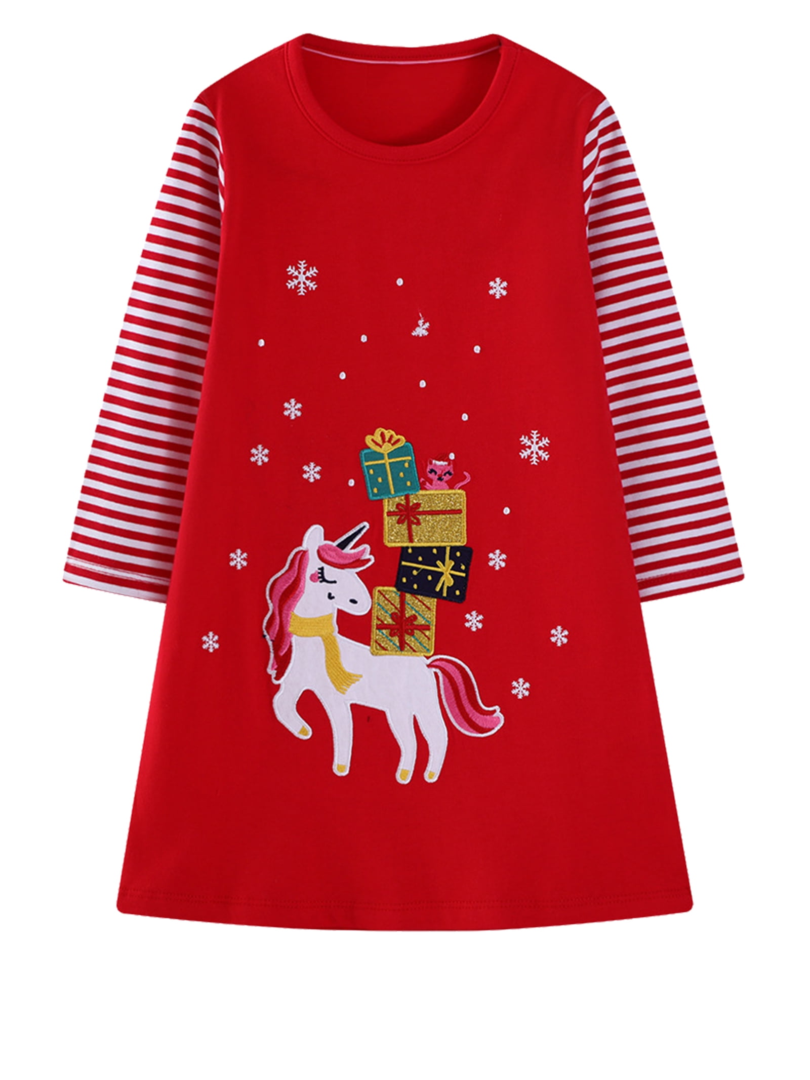 HWJAD 2 7 Years Kids Girl #39 s Dresses Cotton Jersey Long Sleeve Crewneck