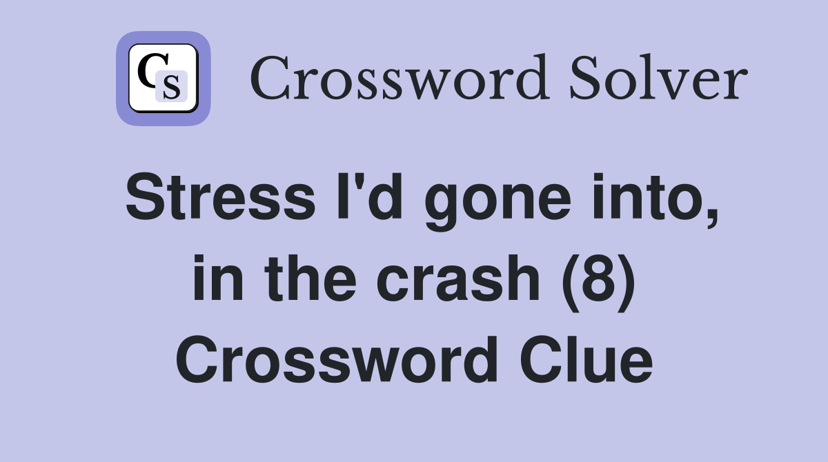 Stress I #39 d gone into in the crash (8) Crossword Clue Answers