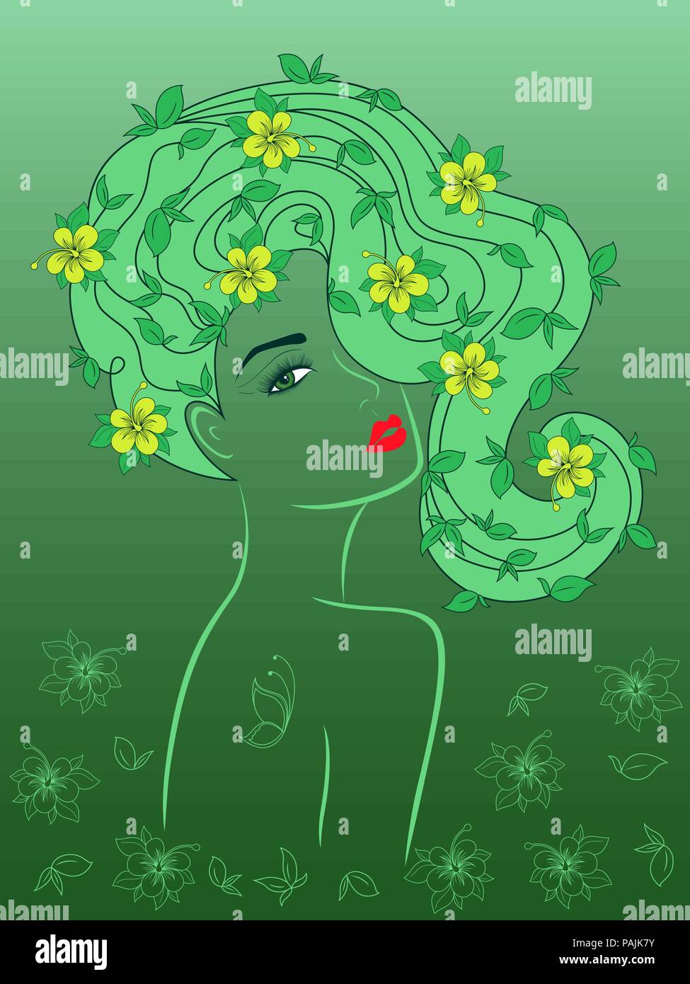 Yellow butterfly in woman Stock Vector Images Alamy