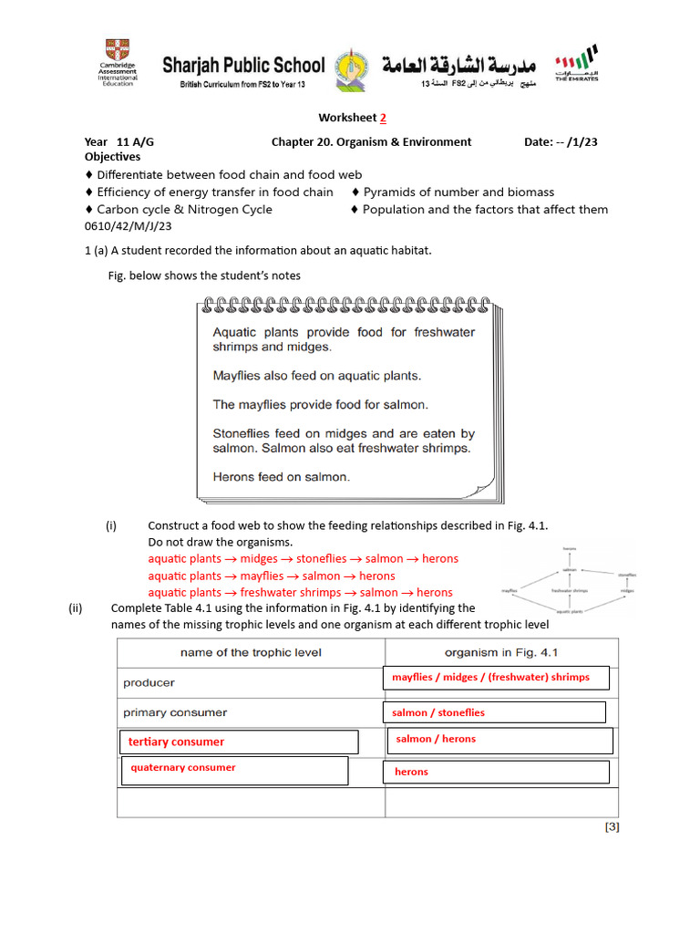 New CH 20 Organism Environment Worksheet 2 Answer Key PDF Food