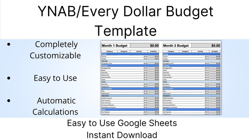 Monthly Budget Template YNAB Every Dollar Dave Ramsey Google