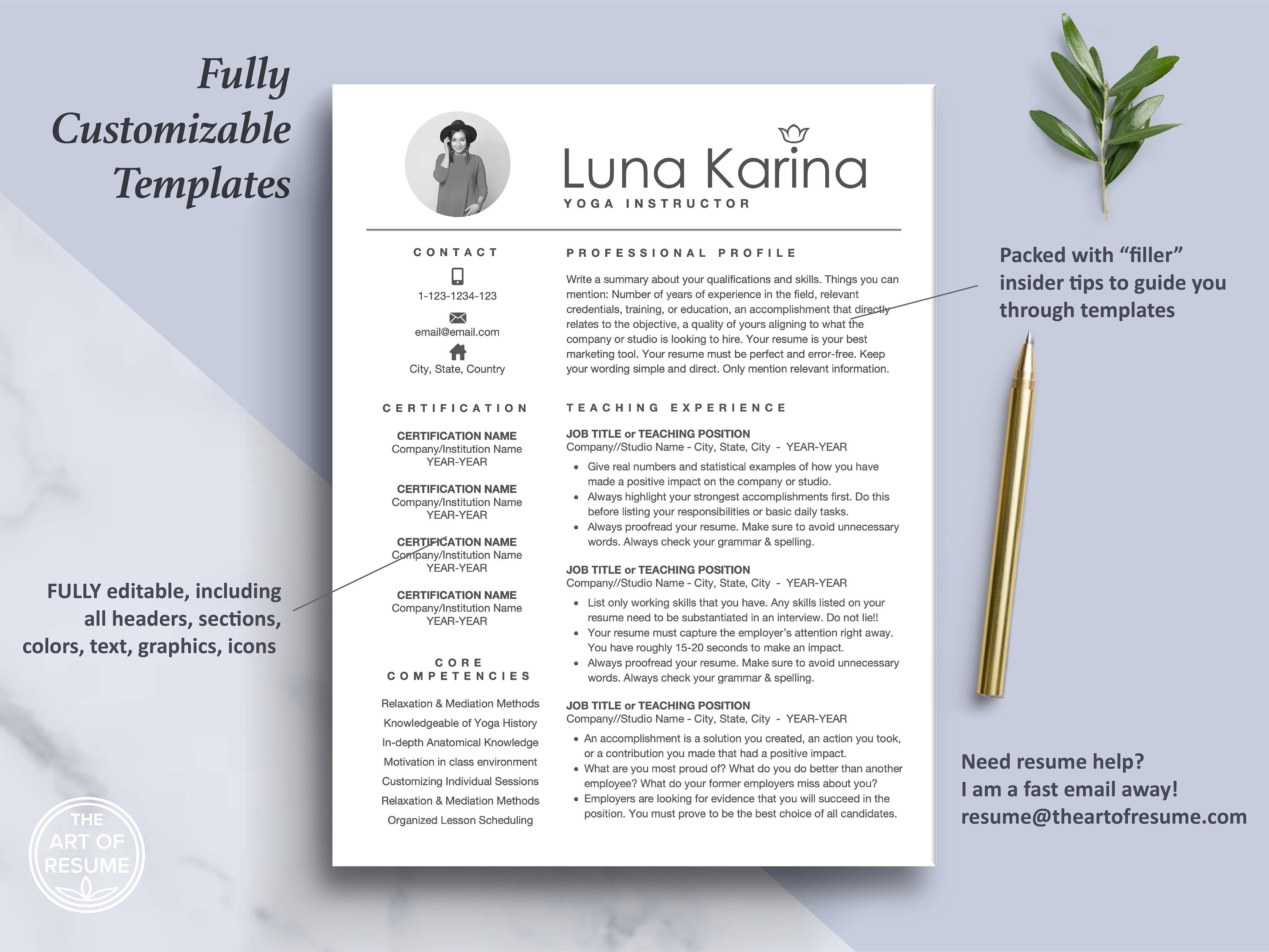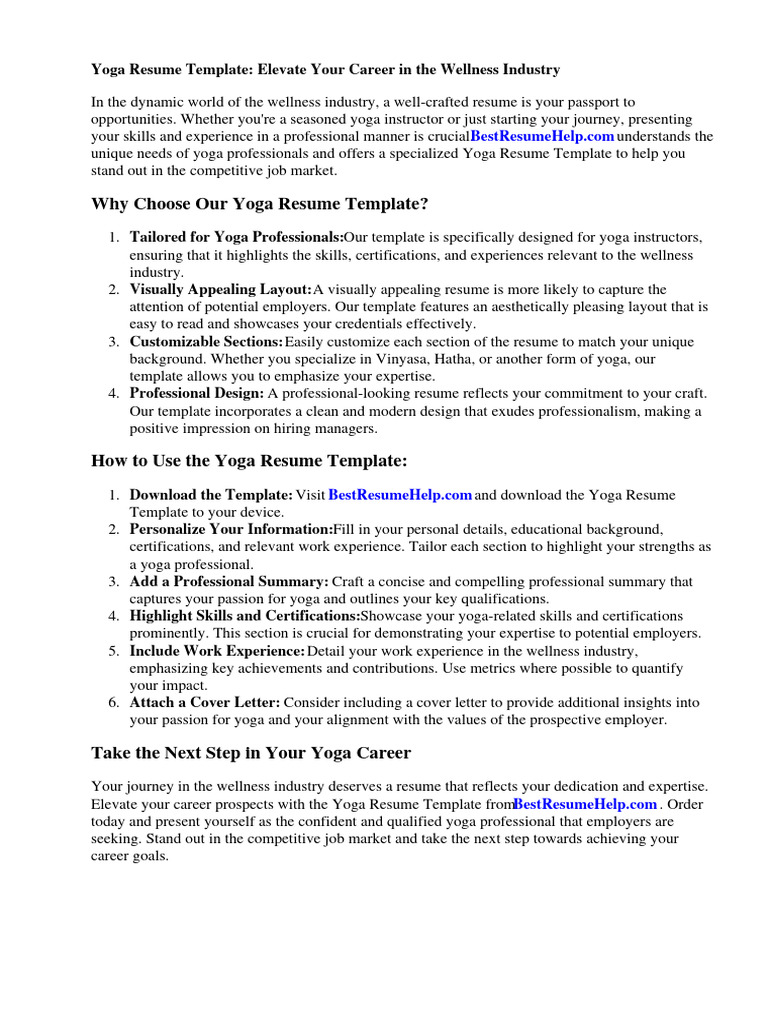 Yoga teacher resume template Artofit