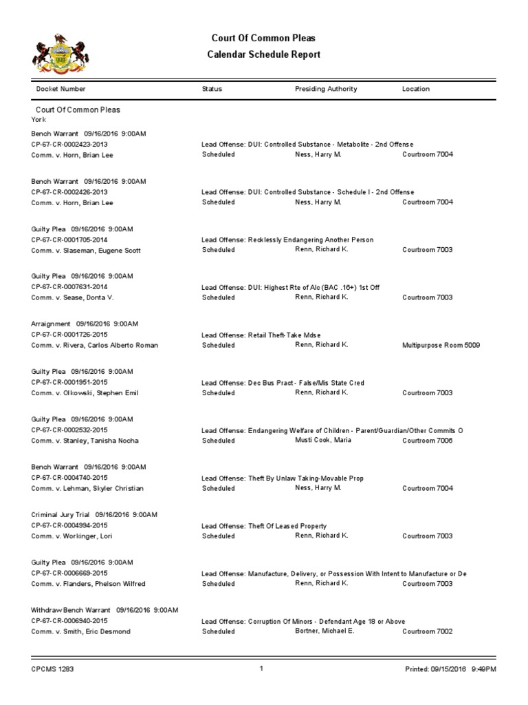 York County Court of Common Pleas For Sept 16 2016 PDF Leisure