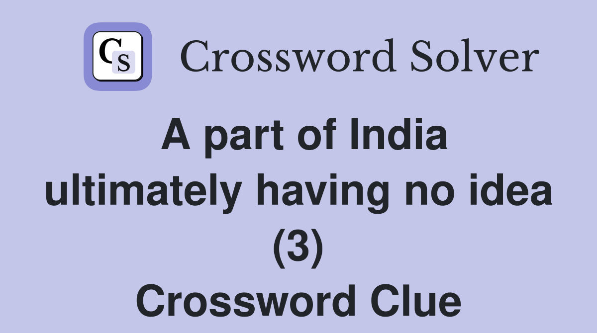 A part of India ultimately having no idea (3) Crossword Clue Answers