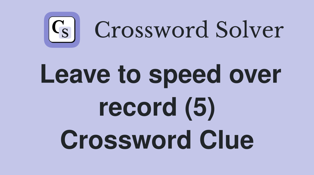 Leave to speed over record (5) Crossword Clue Answers Crossword Solver