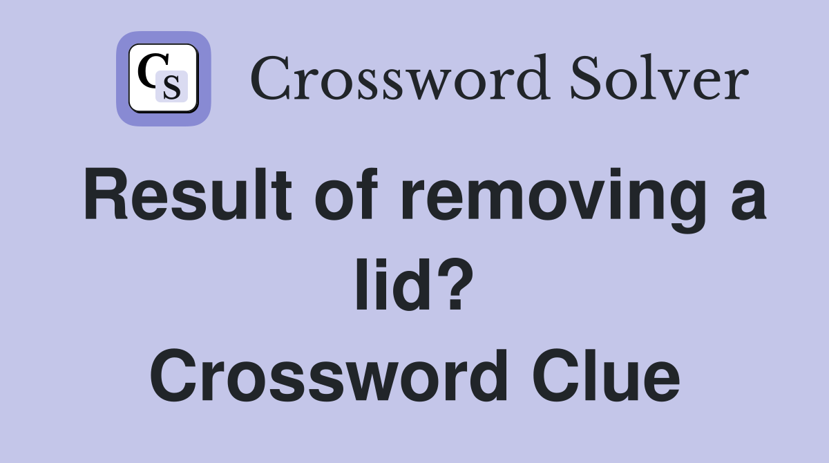 Result of removing a lid? Crossword Clue Answers Crossword Solver
