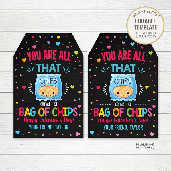 Chips Valentine #39 s Day Gift Tag Template You Are All That and A Bag of