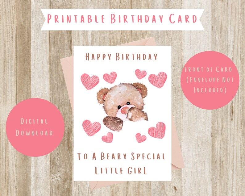Beary Special Printable Birthday Card for Girls Etsy