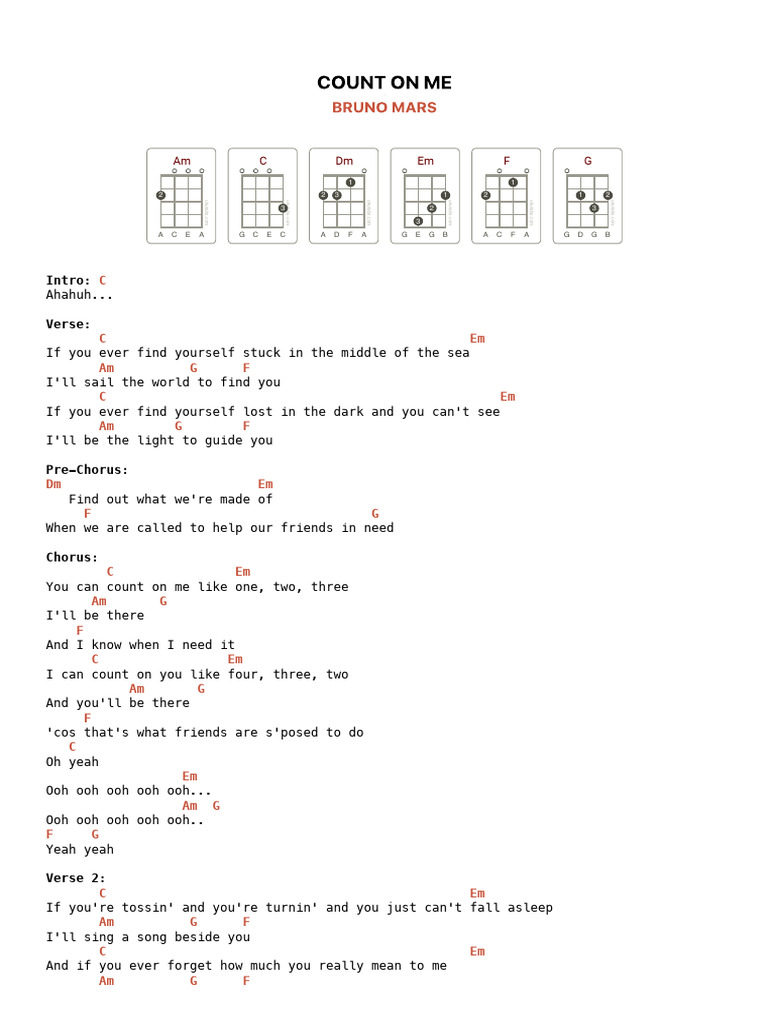 COUNT ON ME Ukulele Tabs by Bruno Mars On UkuTabs PDF Song
