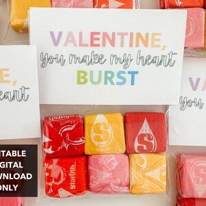 Editable Valentines You Make My Heart Burst Printable Valentines