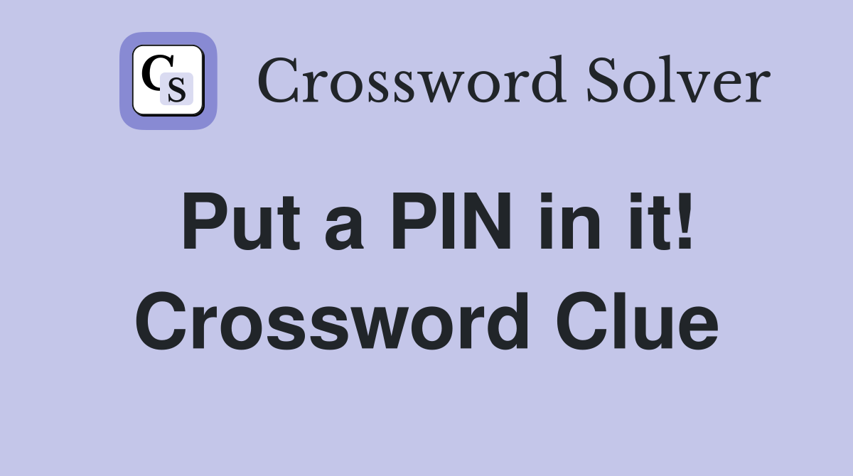 Put a PIN in it Crossword Clue Answers Crossword Solver