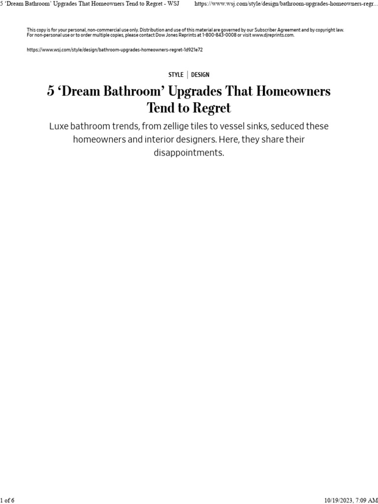 5 Dream Bathroom #39 Upgrades That Homeowners Tend To Regret WSJ PDF