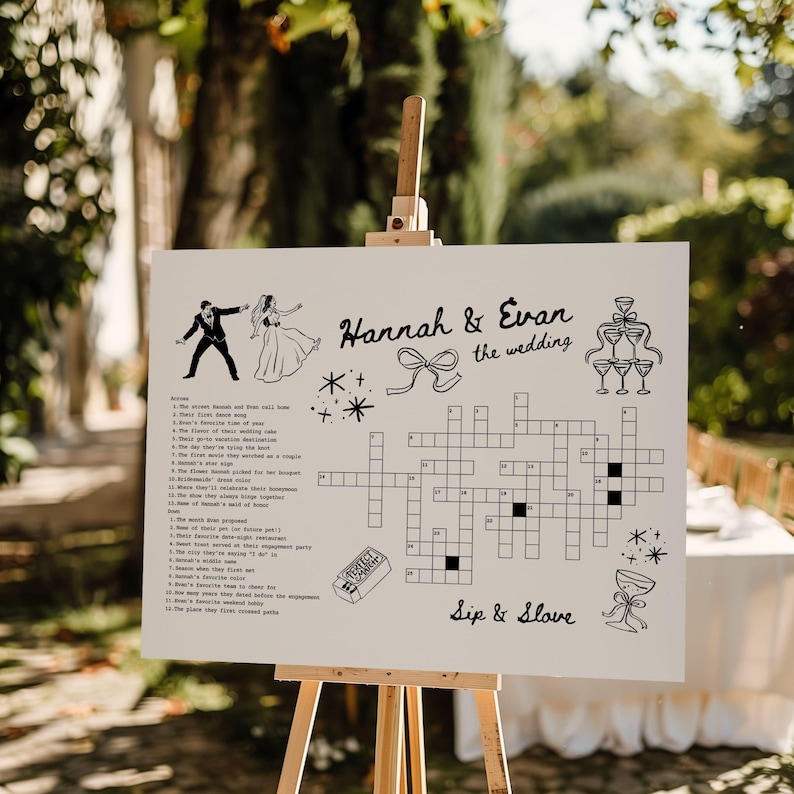 Hand Drawn Wedding Crossword Sip and Solve Puzzle Wedding Guest Games