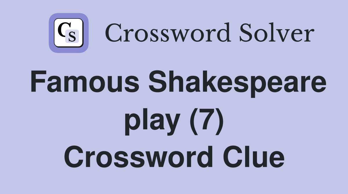 Famous Shakespeare play (7) Crossword Clue Answers Crossword Solver