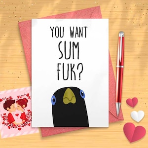 You Want Sum Fuk? Funny Bird Card Raunchy Valentine #39 s Day Card for Him