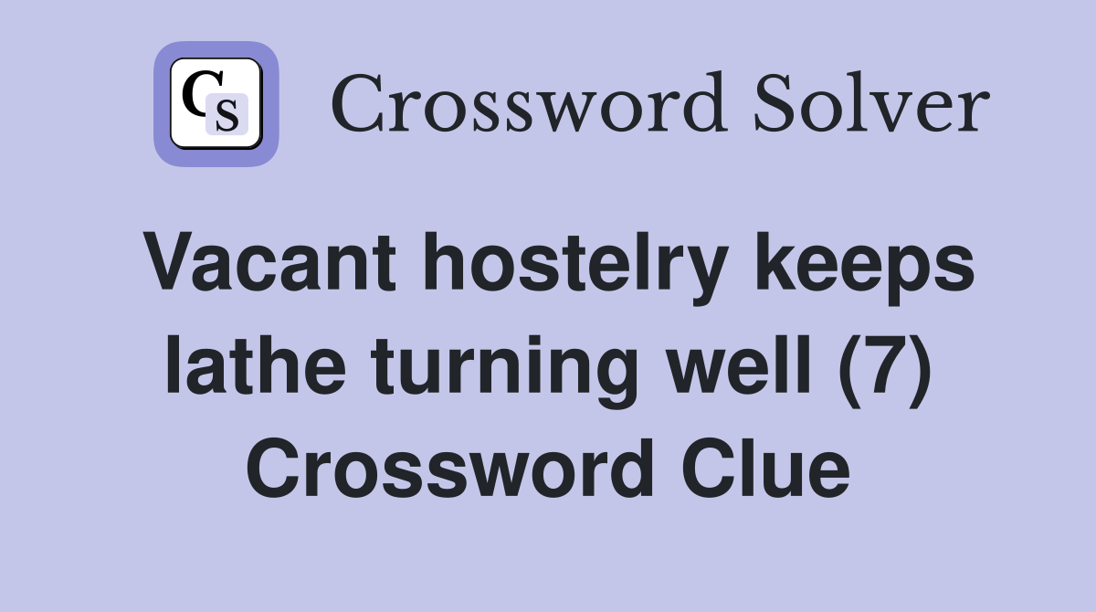 Vacant hostelry keeps lathe turning well (7) Crossword Clue Answers