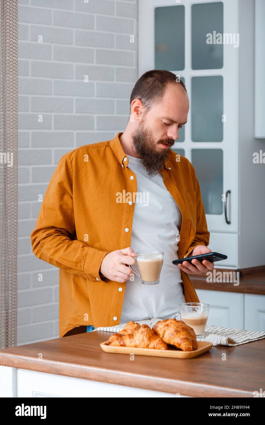 Young bald man drinking coffee hi res stock photography and images Alamy