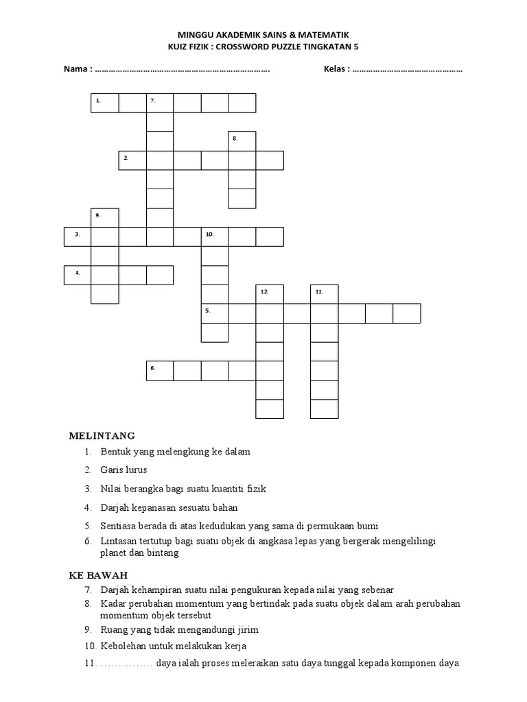 2022 Crossword Puzzle Tingkatan 5 PDF