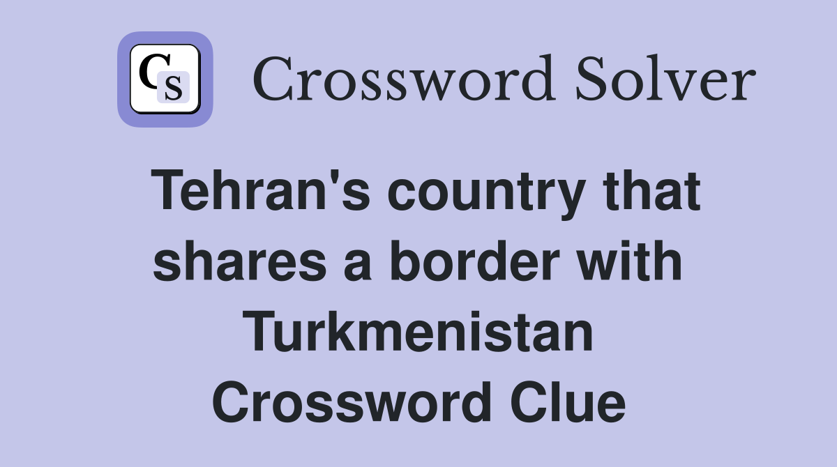 Tehran #39 s country that shares a border with Turkmenistan Crossword
