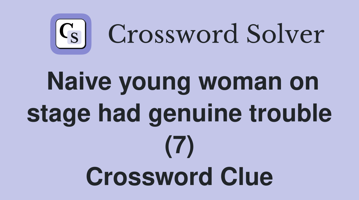 Naive young woman on stage had genuine trouble (7) Crossword Clue