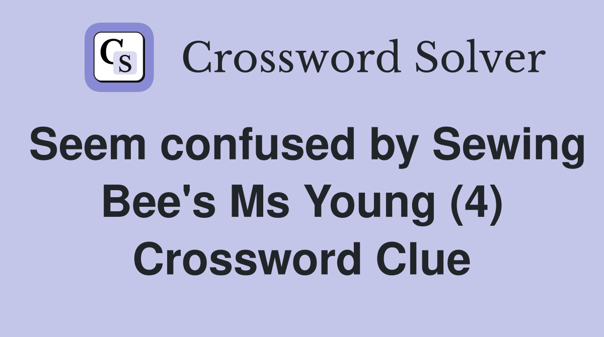 Seem confused by Sewing Bee #39 s Ms Young (4) Crossword Clue Answers