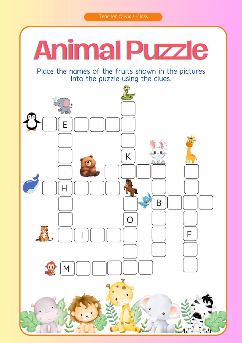 Animal collection salmon to zebra Crossword by BAC Education TPT