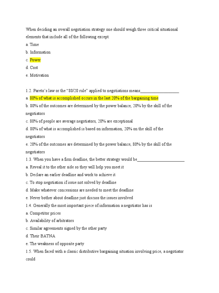 When Deciding An Overall Negotiation Strategy One Should Weigh Three