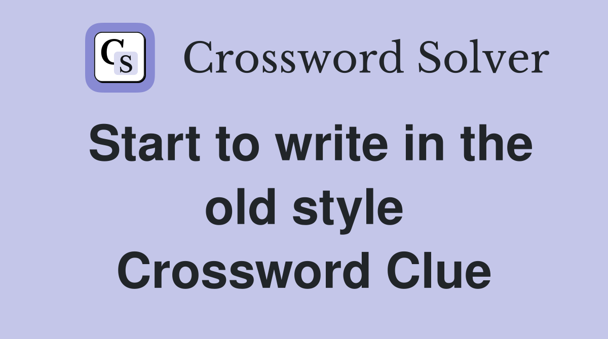 Start to write in the old style Crossword Clue Answers Crossword Solver