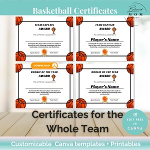 Editable Basketball Award Certificates INSTANT DOWNLOAD PRINTABLE