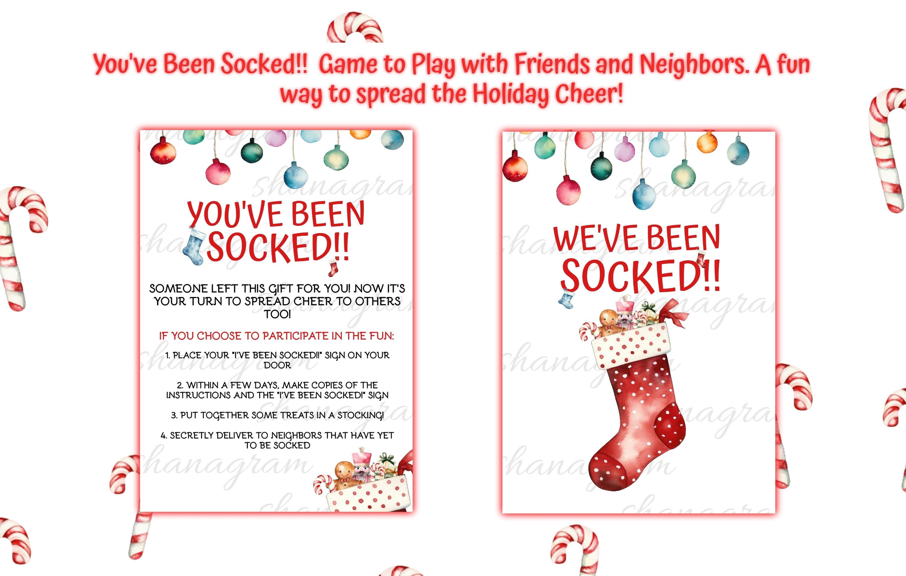 You ve Been Socked Printable Christmas Game Kit Secret Santa Stocking