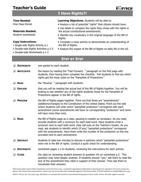 You #39 ve Got Rights Lesson PlanConstitutional Bill of Rights Doc