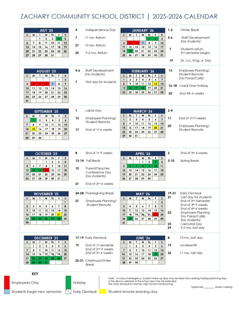 ZACHARY COMMUNITY SCHOOL DISTRICT LA Calendar 25 26 Revised PDF