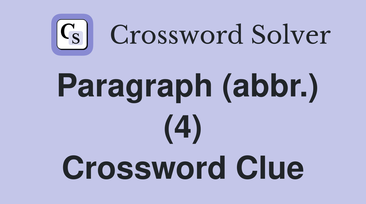 Paragraph (abbr ) (4) Crossword Clue Answers Crossword Solver