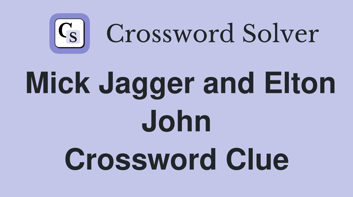 Mick Jagger and Elton John Crossword Clue Answers Crossword Solver