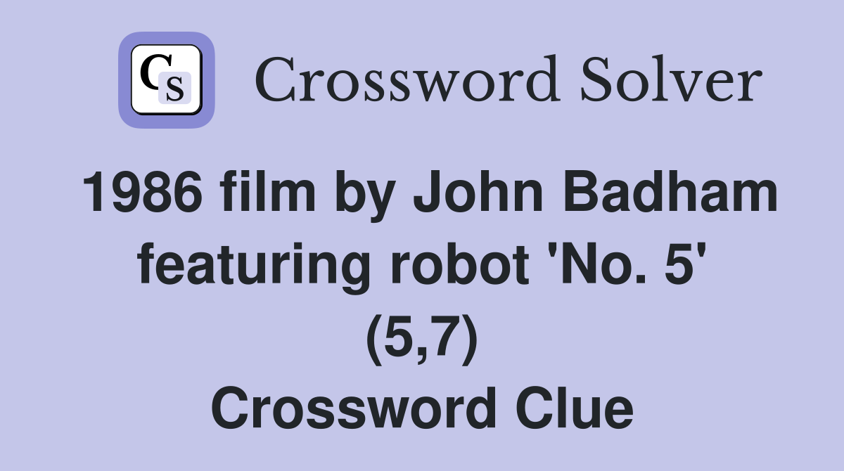 1986 film by John Badham featuring robot #39 No 5 #39 (5 7) Crossword Clue
