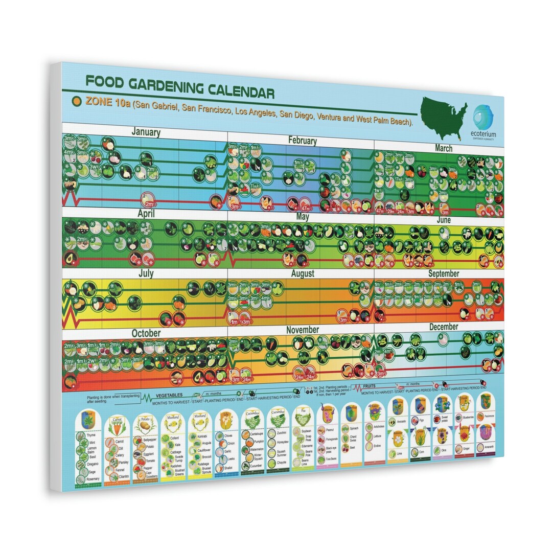 Zone 10a Food Growing Calendar on Canvas 18x24 Inch Wall Poster With