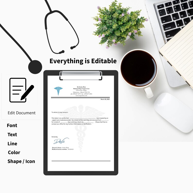 Editable Doctor #39 s Note Template: Urgent Care Medical Excuse (PDF) Etsy