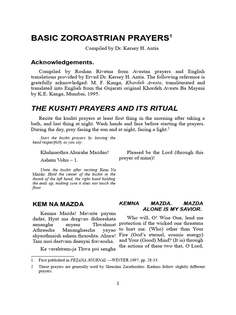 Essential Zoroastrian Prayers Guide PDF Zoroastrianism Religious